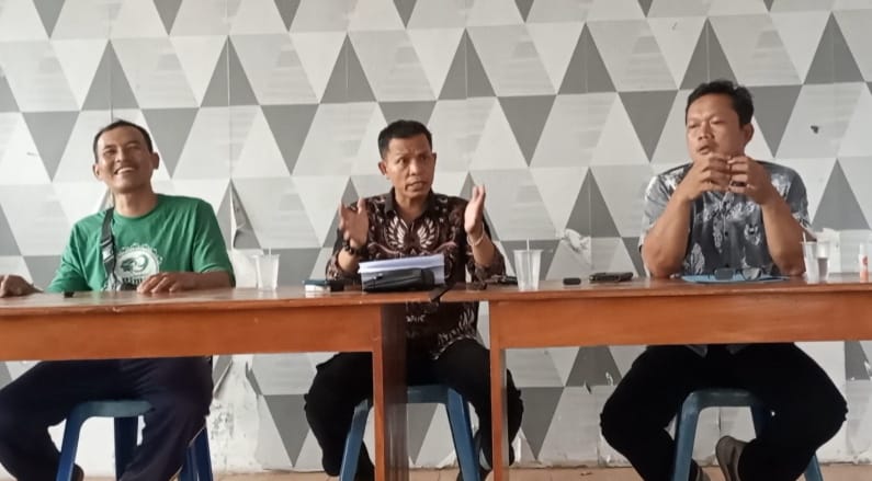 | Ketua DPC LSM Naga Hitam Kabupaten Pemalang (tengah) Surino, Kepala Dusun 1(kiri) Tuwuh Abdiarto dan Sekretaris Desa Lodaya (Kanan) Yanto, Kamis (18/7/2024)/Liputanesia/Foto: Slamet. |